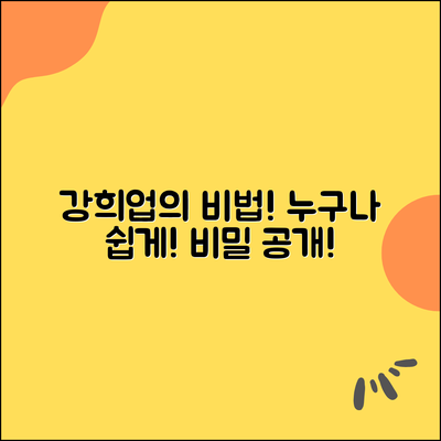여러분, 정말로 성공하고 싶은 마음이 있으신가요? 제가 경험한 강희 업의 비법을 알려드릴게요. 정말 어렵지 않고, 누구나 따라 할 수 있어요!
